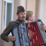 – Жители города и района, лучшие коллективы Дворца культуры, районных Домов культуры, хор ветеранов – никто не остался в стороне, все очень серьезно отнеслись к проекту, – заметила Инна Ольшевская. – У нас нет собственных стилистов, нет художников по костюмам. В течение двух недель шла кропотливая работа. Все, во что одеты участники театрализованно-стилизованной реконструкции, – платья, костюмы, туфельки, военная форма, аксессуары середины прошлого века, – подлинные. Они хранились в семьях все эти 75 лет. А артисты, выступающие в роли советских солдат и офицеров, даже позволили себе надеть ордена и медали своих дедов. Победа в Великой Отечественной войне досталась высокой ценой. И нам необходимо передавать из поколения в поколение эстафету памяти и ответственности за судьбу своей Отчизны.