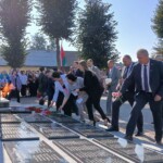 Возле памятника собрались руководство района, руководители и работники организаций и предприятий района, представители общественных объединений, молодежь.