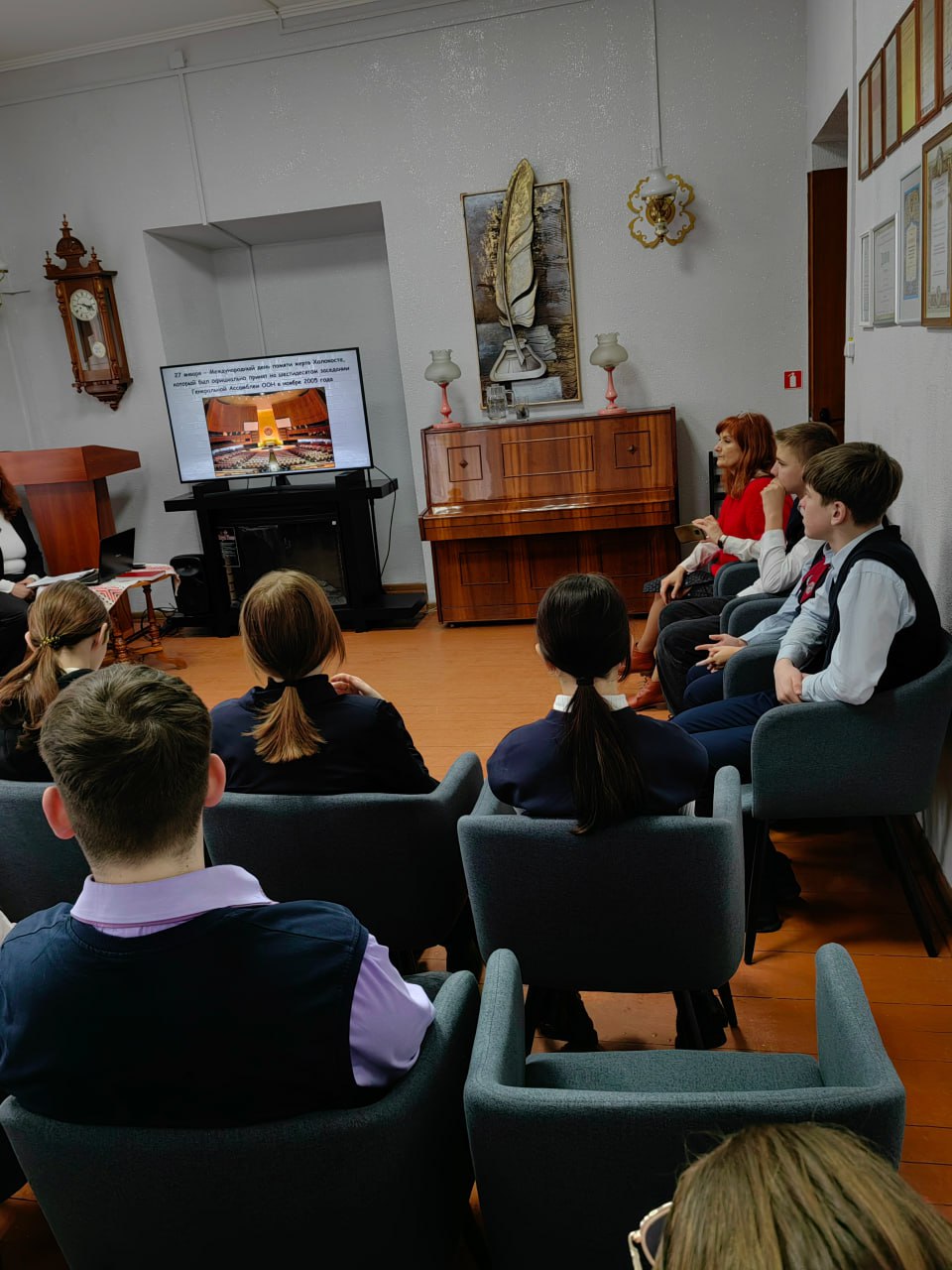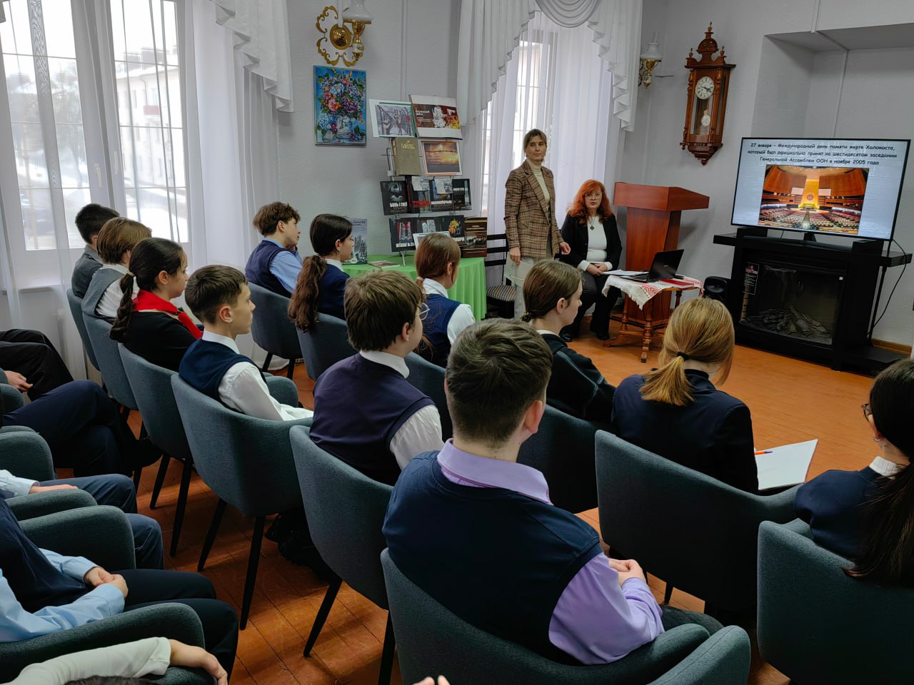 На мероприятие были приглашены учащиеся 8 класса ГУО «Средняя школа №2 г. Слонима». Библиограф отдела обслуживания и информации Колесникова Людмила Леонидовна рассказала о Холокосте, как одном из самых страшных проявлений бесчеловечной политики нацистов, познакомились с историей лагерей Освенцим, Майданек, Дахау — трагическими страницами периода Великой Отечественной войны.