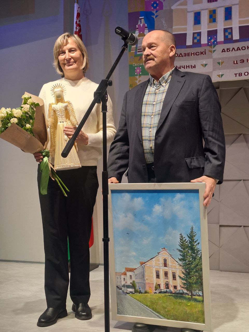 Особое место среди поздравлений занял подарок от методиста Е.Ф. Шунейко и мастера А. Матусевич — уникальное панно, созданное специально к юбилею центра, воплотив в себе богатство культурного наследия Гродненщины.