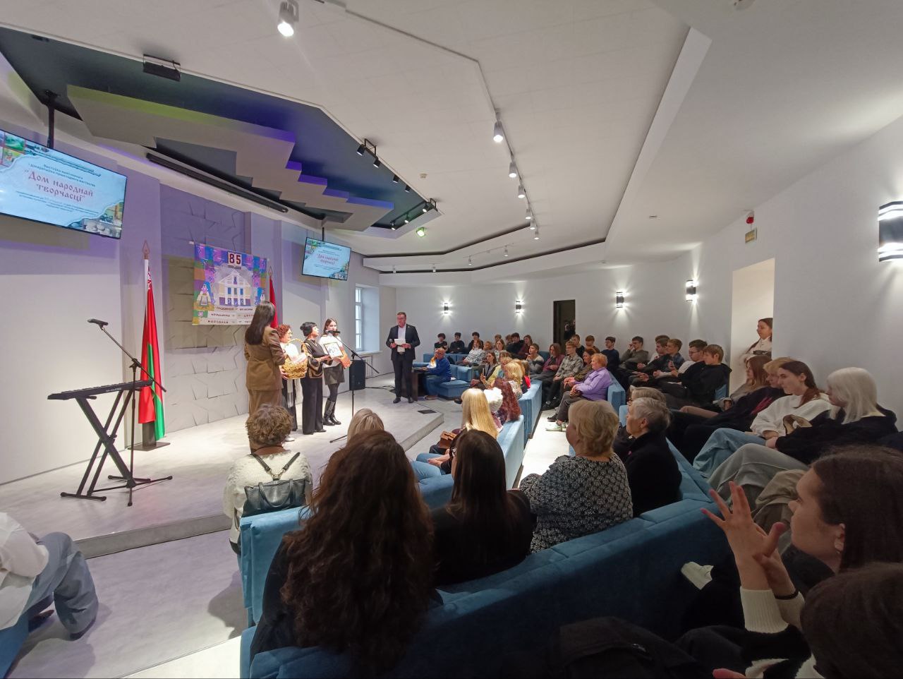 Директор Гродненского ОМЦНТ Екатерина Васильевна Хильмончик выразила сердечную благодарность за внимание, подарки и добрые слова, особо подчеркнув огромный вклад коллектива центра в сохранение и развитие народных традиций, а также значимость их деятельности для культурной жизни всего Гродненского региона.
