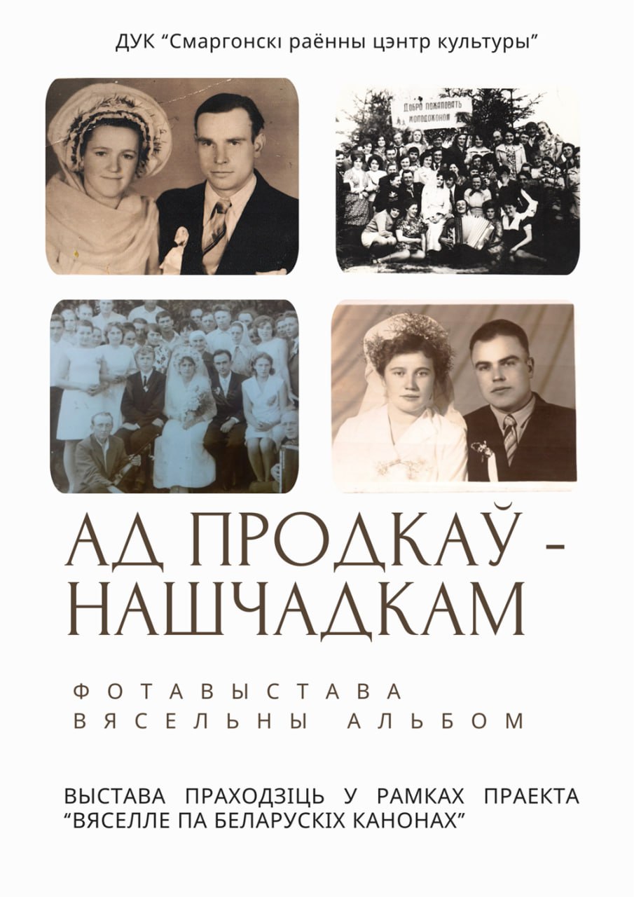 22.04.2026 г. Метадысты ДУК “Смаргонскі раённы цэнтр культуры” прыступілі да працы над стварэннем унікальнай вясельнай фотавыставы пад назвай «Ад продкаў – нашчадкам». Урачыстае адкрыццё выставы адбудзецца ў чэрвені 2026 года ў аг. Залессе, у рамках рэгіянальнага фэстывалю інструментальнай музыкі «Іграю, як знаю, скачу як хачу».Запрашаем усіх жыхароў Смаргоні прыняць удзел у стварэнні нашай выставы. Калі …
