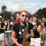 Музыканты, танцоры, актеры, живые статуи прошли к молодежному центру «Гродно» в танце, на ходулях и с шумом. О приближении колонны задолго до того, как она появится на глазах у восторженных зрителей, говорили бразильские барабаны. Это коллектив «Raccoon Batucada» из Минска возглавил шествие. Они же потом и открывали программу на площадке у молодежного центра «Гродно».