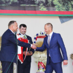 Затем на открытии праздника нашего города войт Пётр Клыс и другие представители польской делегации с праздничной сцены приветствовали мостовчан, отметили отзывчивость и доброту жителей города, пообещали организовать взаимовыгодное сотрудничество. Юрию Николаевичу представители Ломжи вручили золотую статуэтку в виде розы с надписью «Podziekowanie za wspolprace. Piotr Klys Woit Gminy Lomza. Mosty 24. 08. 2019».