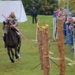 Всадники из клуба «Золотая шпора» уже продемонстрировали зрителям умение на скаку обращаться с оружием, но поединки продолжаются.