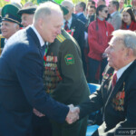 На площади Ленина собрались сотни гродненцев: представители трудовых коллективов, ветеранских организаций, БРСМ, учащиеся кадетских классов, горожане. Главными героями праздника были ветераны Великой Отечественной войны.