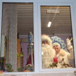 Калі ж ехалі праз райцэнтр, то ўвагу Дзядулі Мароза прыцягнулі прыгожыя ўзоры на вокнах Карэліцкай дзіцячай школы мастацтваў. Таму наш паўночны госць супыніў машыну і даў майстар-клас па марозным жывапісе на шыбах.