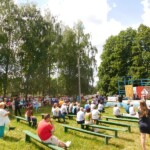 Жыхары і госці Вялікіх Азёрак сабраліся на школьным садыёне. На пляцоўцы “вырасла” імправізаваная сцэна, упрыгожаная саматканымі дыванамі і рушнікамі. Тут жа была наладжана выстаўка вырабаў народных умельцаў. Рушнікі ды вышыванкі здзіўлялі наведвальнікаў неверагоднай прыгажосцю. Парадаваў гледачоў фальклорна-танцавальны гурт “Рэчанька”, вакальны гурт “Незабудка”, якія вельмі прыгожа выконвалі беларускія народныя песні “Сядзіць голуб на бярозе”, “Ой, сівы конь бяжыць”. Дзяўчаты з фальклорнага гурта “Крынічка” і самі спявалі, і запрашалі ўсіх жадаючых паспрабаваць свае сілы ў выкананні вясёлых прыпевак.