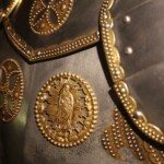 Привлекает внимание боевое убранство крылатых гусаров, которое использовали воины Речи Посполитой в XVII веке. Эффектный ряд из перьев носил далеко не эстетическую функцию. По разным теориям «крылья» являлись защитой от аркана, который часто имели на вооружении восточные враги, и от ударов холодным оружием по спине. Также при езде перья издавали звук, отпугивающий коней противника, а в случае падения на землю, они амортизировали удар. Вновь же, орлиные крылья за спиной носили богатые воины, бедные – вставляли куриные или гусиные перья. На грудной части доспеха обязательным было изображение Божьей Матери, что говорило о благословении воина.